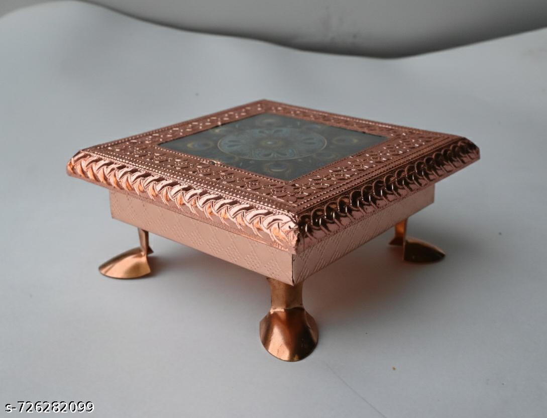 Handcrafted Wooden Meenakari Bajot Inch | Mini Decorative Pooja Chowki with Golden Finish for Home Temple, Mandir & Festival Use | Traditional Indian Handicraft Gift Item (Wooden (5” x 5”)(Pack of 1))