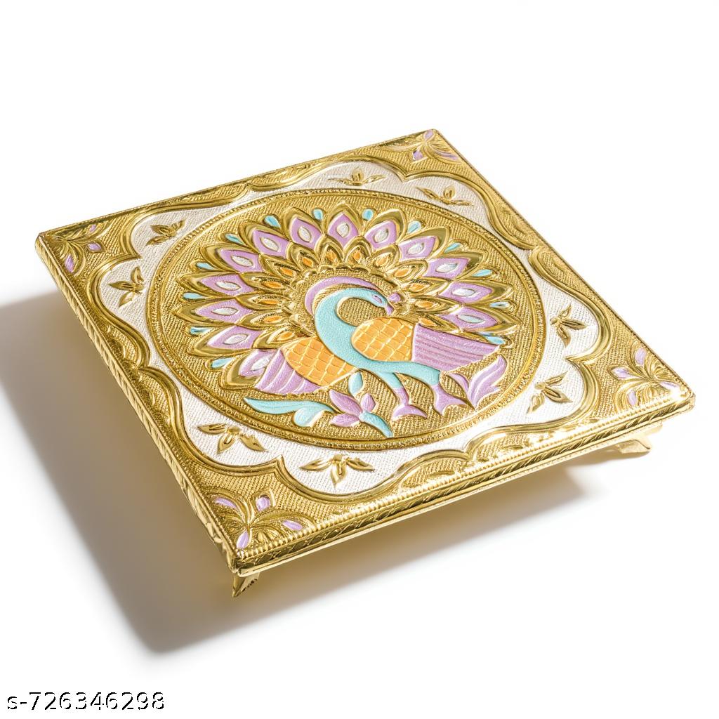 Material: WOOD Type: Puja Chowki Product Length: 20.5 cm Product Height: 4.5 cm Product Breadth: 1.5 cm Net Quantity (N): 1 Purpose: Primarily used in home temples or “Mandirs” to place god idols, diya lamps, or other sacred items during worship (Pooja). It is commonly used for festivals like Diwali and Navratri, or during wedding ceremonies. : Features Meenakari work, a traditional Indian of decorating metal or wooden surfaces with colorful, intricate enamel designs. This specific piece showcases a vibrant peacock design, a symbol of grace and beauty often found in Indian handicrafts. Material: Typically constructed from wood for the base and finished with a golden Meenakari foil or metal sheet on the exterior for a regal look. It often includes sturdy metal legs for stability. Design: Often features floral or peacock motifs with a golden base and multicolored enamel accents. Dimensions: Available in various sizes, ranging from small 4-inch versions to larger 12-inch platforms. Versatility: Beyond its religious use, it can serve as a decorative home accent, a stand for indoor plants, or gift for housewarming and weddings. Country of Origin: India